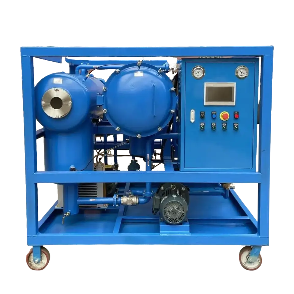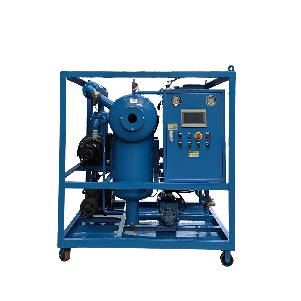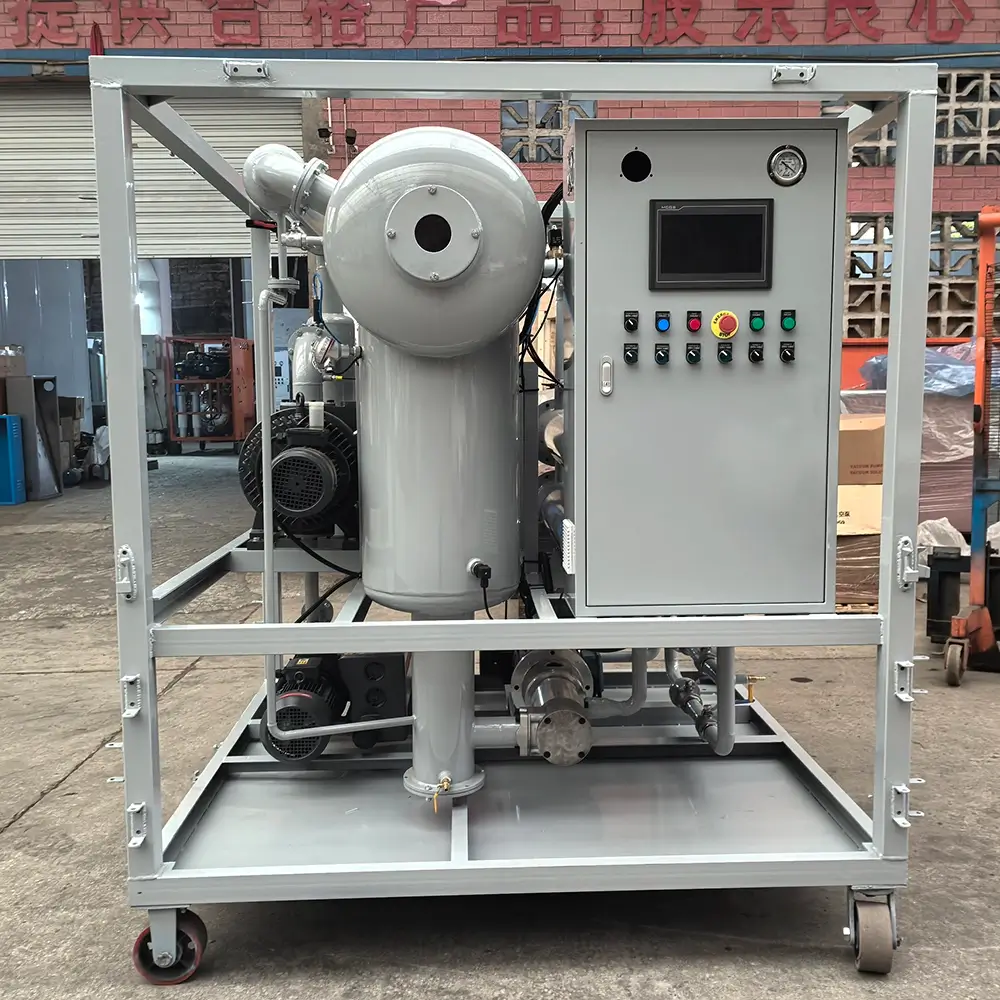 Patented double-stage vacuum system removes moisture (≤3ppm) and dissolved gases (≤0.1%), restoring dielectric strength.