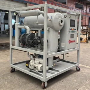 Patented double-stage vacuum system removes moisture (≤3ppm) and dissolved gases (≤0.1%), restoring dielectric strength.